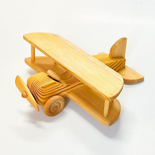 北欧のスウェーデンからやってきた美しい曲線が特徴、可愛いデザインの飛行機です。前についたプロペラが回り、遊びながら空を飛ぶ、お子さんの想像力をかき立てるおもちゃです。つみき遊びやごっこ遊びに加えると遊びがより広がります。