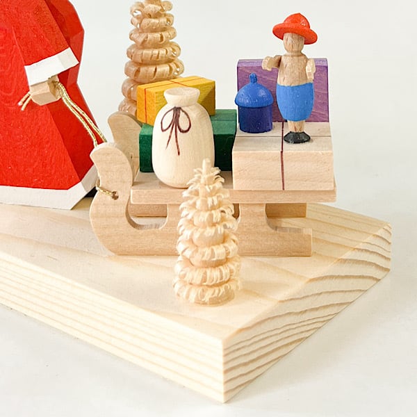 ひとつひとつ丁寧に作られた木製のキャンドルスタンドです。サンタさんが引くそりにはおもちゃがいっぱい。白木のツリーもついています。テーブルや玄関などに飾れば・素敵なクリスマスのインテリアに。