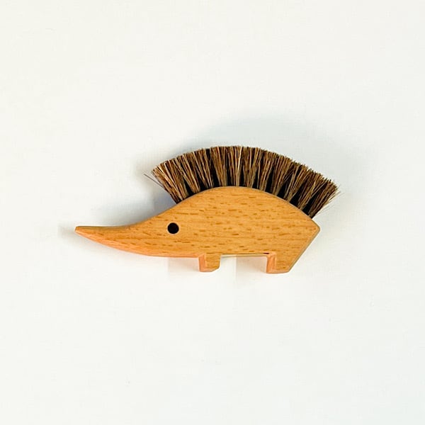 ハリネズミの針の部分が毛になっているおしゃれで可愛い卓上ブラシです。ちょっとだけ勉強机や事務机を綺麗にしたいなあという時にぴったりなアイテムです。