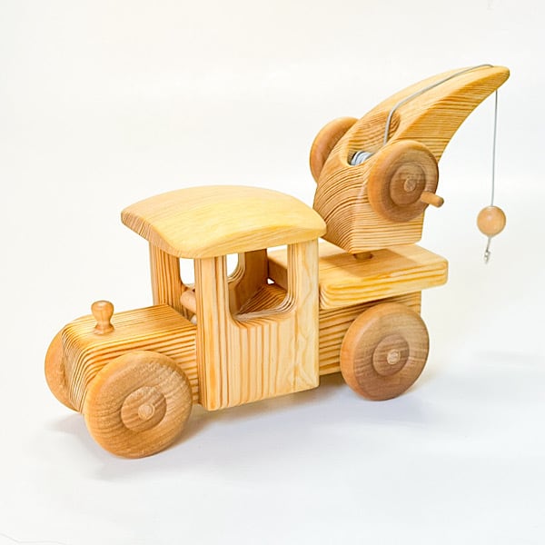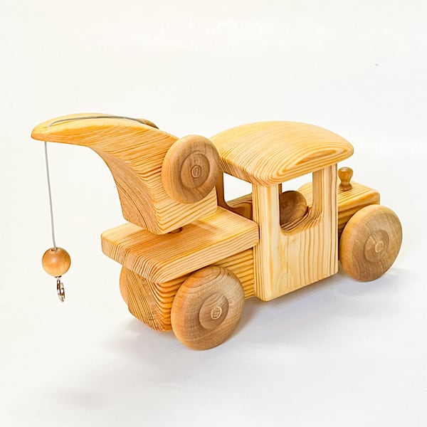 北欧のスウェーデンからやってきた美しい曲線が特徴、可愛いデザインの車です。レッカー車の後ろについている小さなフックにお気に入りの車やおもちゃを引っ掛けてレバーを回すと、なんとフック部分が上に引き上げられるのです!子供は働く車が大好きです。つみき遊びやごっこ遊びに加えると遊びがより広がります。