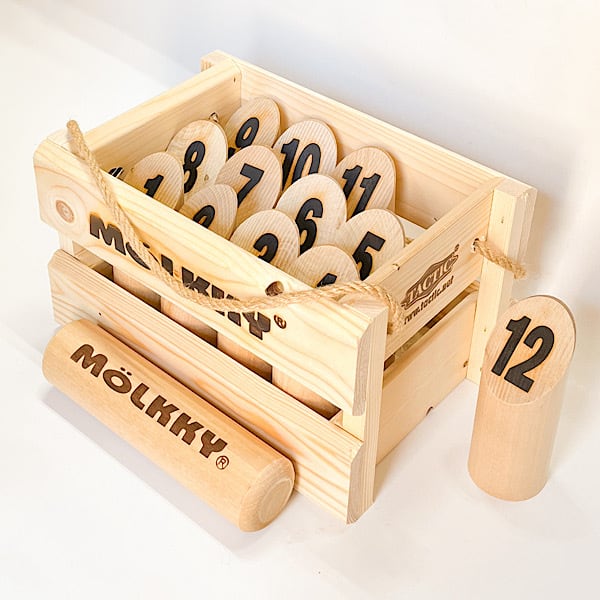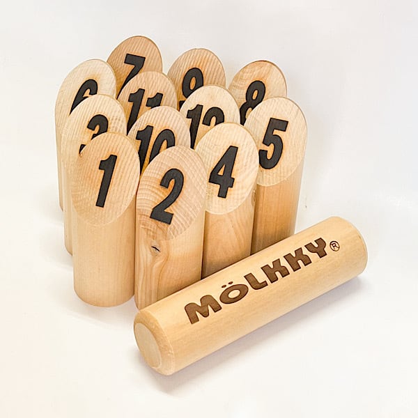 モルックはフィンランド発祥のモルックと呼ばれる木の棒を投げ、12本並んだ木製のピンを倒すゲームです。ボーリングやカーリングの要素があり屋内や屋外でも楽しむことが出来ます。
