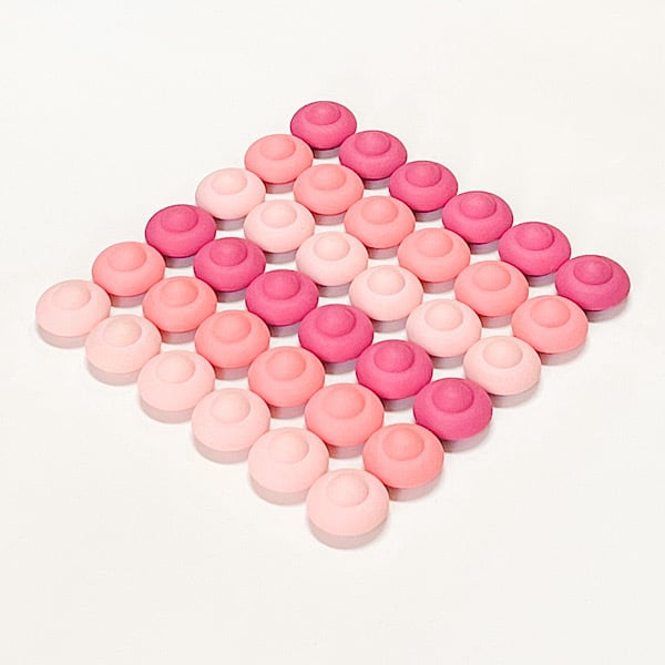 まんだらシリーズはいろいろな遊びの材料として活躍します。例えばフラワーはお花のお菓子のようなパーツがいっぱい。お菓子になったり、お花飾りになったり、床に並べてみると素敵なアートに、、楽しい楽しいおもちゃです。