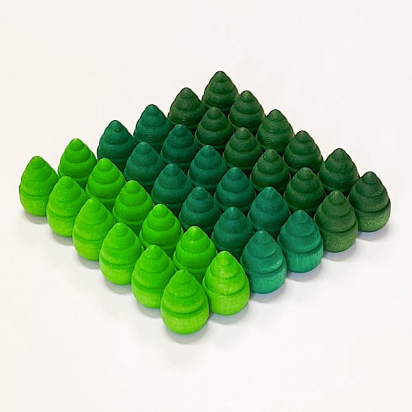 まんだらシリーズはいろいろな遊びの材料として活躍します。例えばツリーは木のようなパーツがいっぱい。森になったり、野菜畑になったり、青虫になったり、床に並べてみると素敵なアートに、、楽しい楽しいおもちゃです。