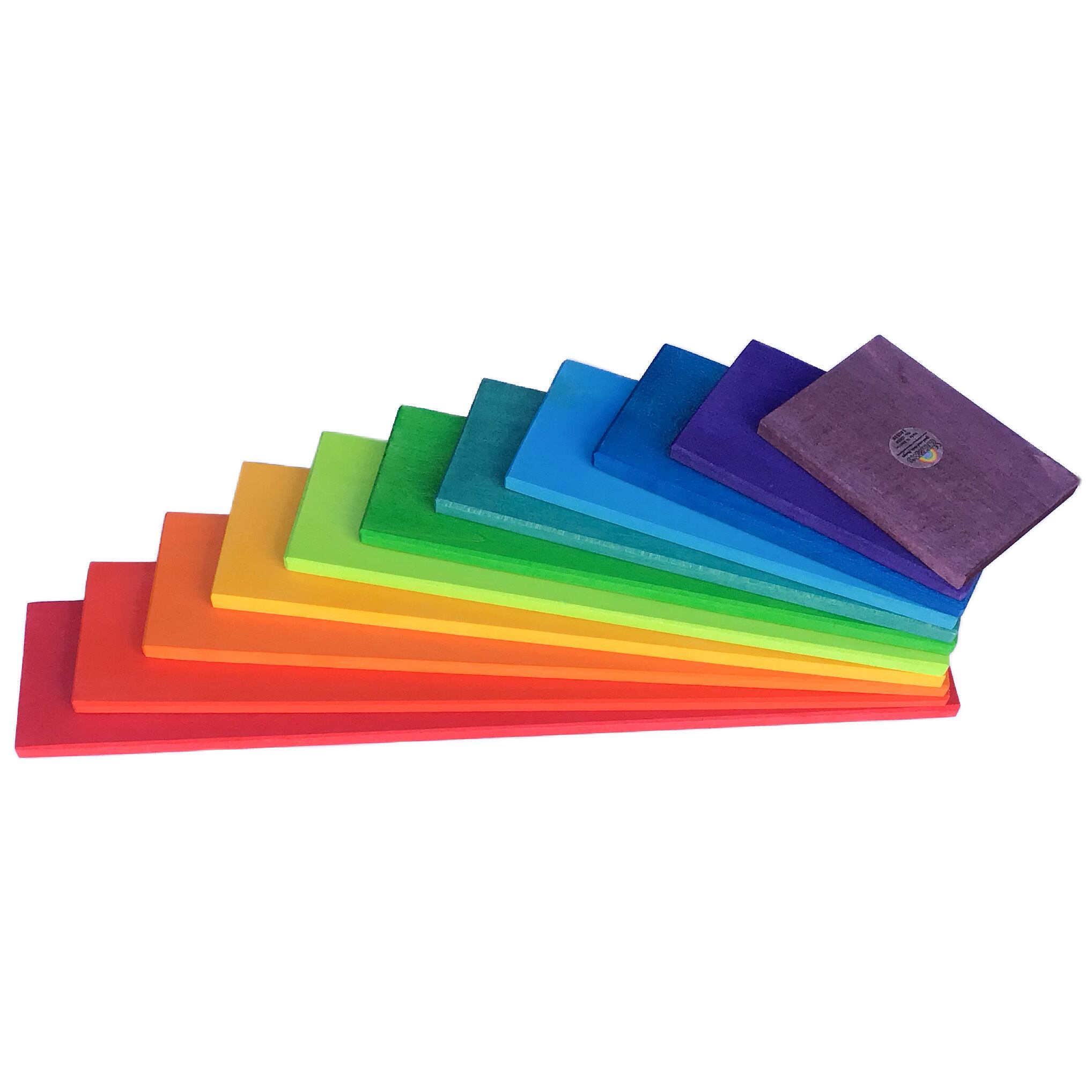 虹の色からうまれたグリムス社の個性的なつみきです。アーチレインボー(虹色トンネル)や積み木と組み合わせることで。立体や空間への遊びが広がってきます。