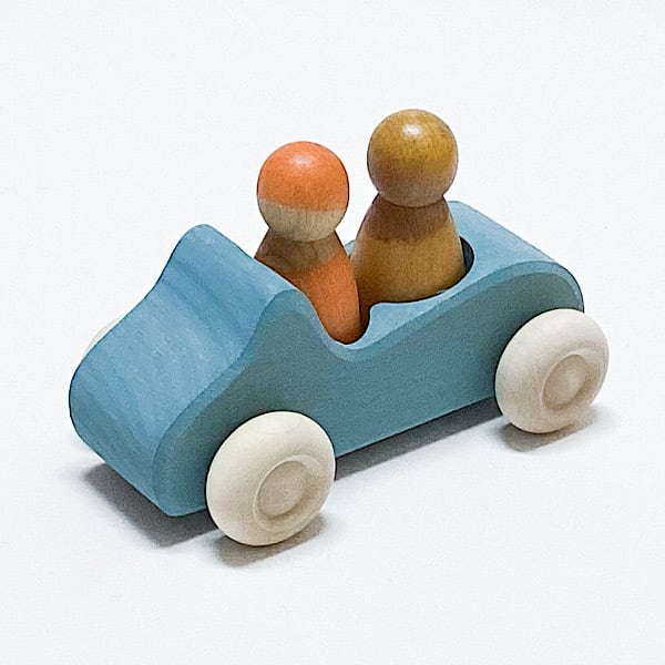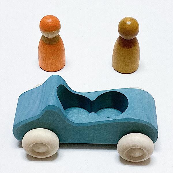 木の素材感をしっかり感じることの出来る、手に持ちやすい大きさのおもちゃです。オープンカーの運転席にはかわいい人形が2体・・・・積み木と合わせたり・・いろいろ遊びが広がっていきます。色あせしないので、使わなくなったら素敵なインテリアにも。