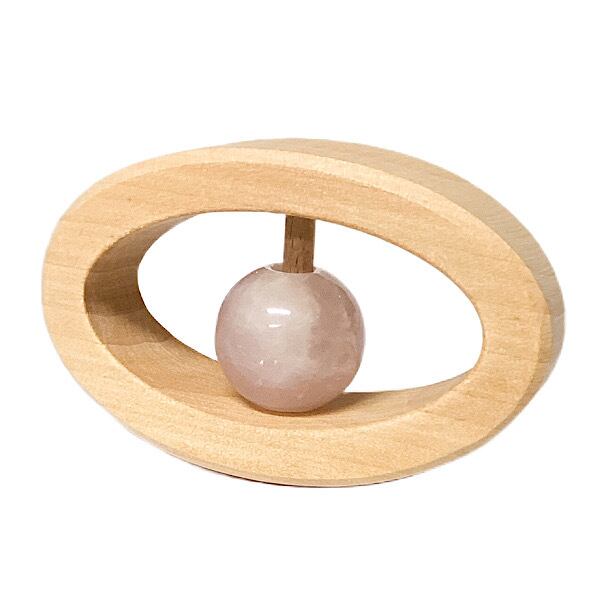 天然石のローズクォーツ(ピンク色の水晶)を使った赤ちゃん用のラトルです。