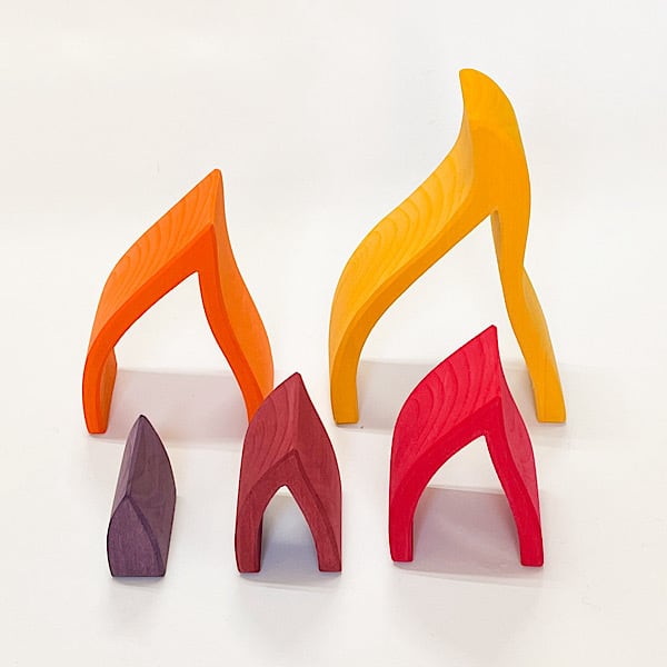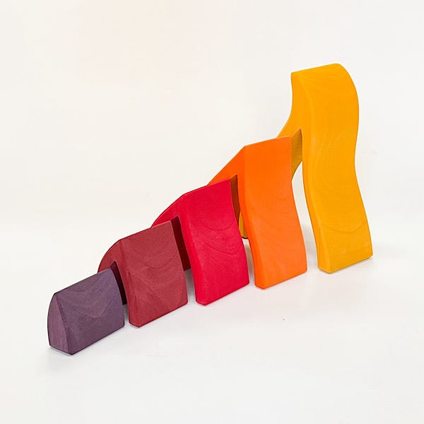 セイヨウナシノキを丁寧にくりぬいたはめこ式の木の積み木です。5つのパーツを並べたり、スライドさせてトンネルにしたり、おままごと遊びや積み木あそびに参加させたり、、遊びが広がってきます。グリムス社の商品はこどもが創造的に遊べることを考えてデザインされています。そのデザインの美しさは世代を超えてお使いいただけます。素敵なインテリアにも。