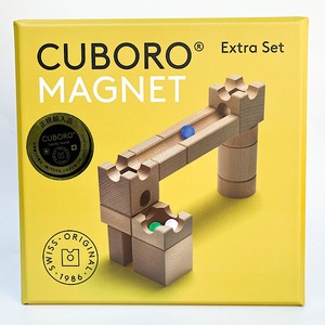 キュボロマグネットは、Mと刻印されているピースの中にはマグネットが埋め込まれています。そのピース同士を近づけるとピタッとくっつくため、土台を使わなくても、宙に浮いたコースを作ることができ、ピースの節約にもなります。キュボロスタンダードやキュボロジュニアとセットにするとより長い道を楽しむことが出来ます。