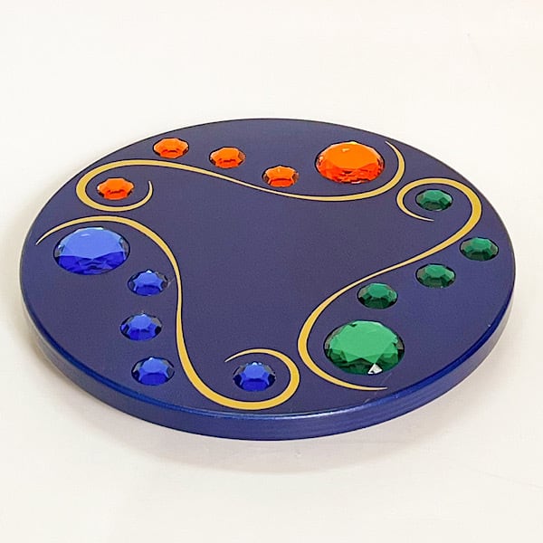 キラキラ光る6色のジュエルが、木製の大きなコマにはめ込まれています。小さなお子さんが体全体を使って回すのに適した大きさです。回し方によって違った美しい色の世界を楽しむことが出来ます。